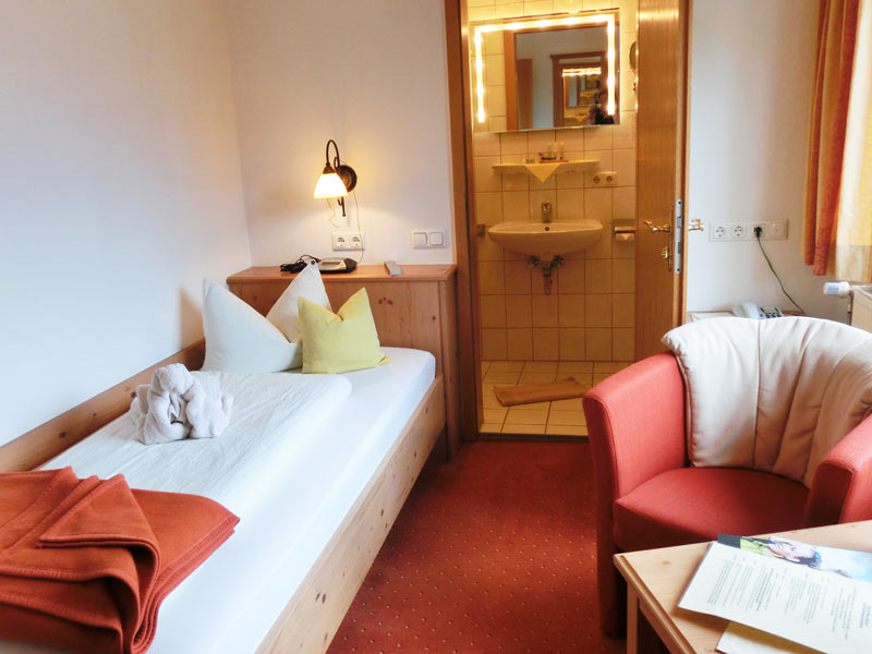 Unser Einzelzimmer ist sehr begehrt bei unseren Gästen, die z.B. mit dem Motorrad auf der Durchreise sind oder die gerne alleine die Bergwelt mit dem Mountainbike erleben möchten. In wenigen Gehminuten sind Sie in Mittenwald Zentrum.